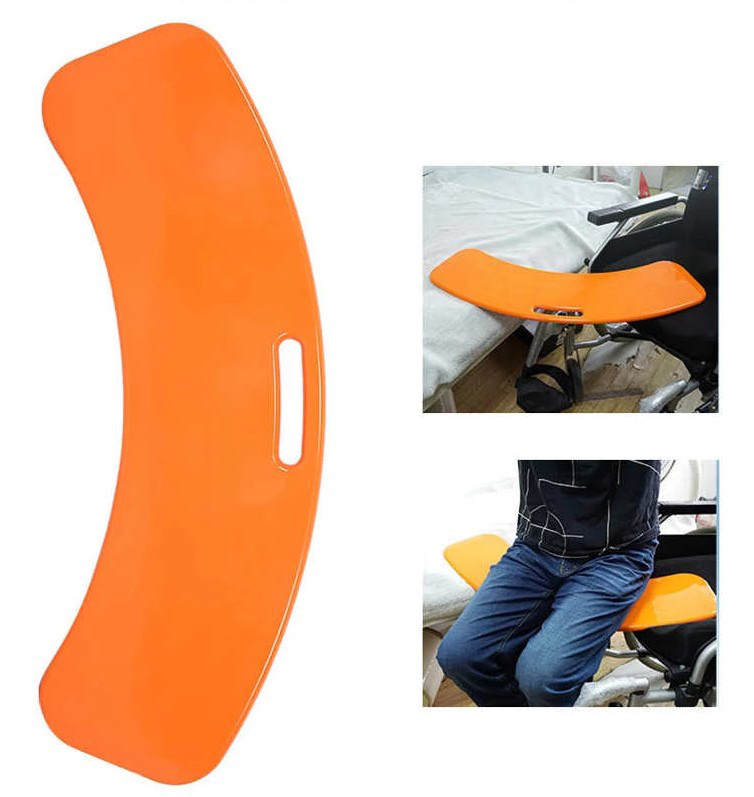 Ich habe mir das beste Hilfsmittel gekauft, das ich jemals erworben habe. Ich habe immer wieder mal Probleme, mich vom Bett in den Rolli umzusetzen, letztendlich tut es aber immer. Es ist dann eben eine Frage der Zeit. Manchmal brauche ich eine halbe Stunde, um vom Bett in den Rolli zu kommen. Dieses Problem gehört jetzt der Vergangenheit an. Ich habe mir ein Transferbrett als Banana-Board gekauft, das ist der Brüller. Das gebogene Board ist 80 cm lang und hat eine Tragkraft von 150 kg. Man muss beim Umsetzen vorsichtig sein und darf nicht übermütig werden, die Oberfläche ist so glatt wie Glatteis. Nach etwas Übung hat man den Ablauf drauf, dann geht das Umsetzen ohne jeglichen Kraftaufwand. Ich könnte mich mit dem Board 50 mal am Tag umsetzen, kein Problem. Ich nutze das Board natürlich auch, um mich vom Rolli ins Auto umzusetzen. Kein Problem, der Ablauf ist totsicher, man kann man sich gar nicht daneben setzen.