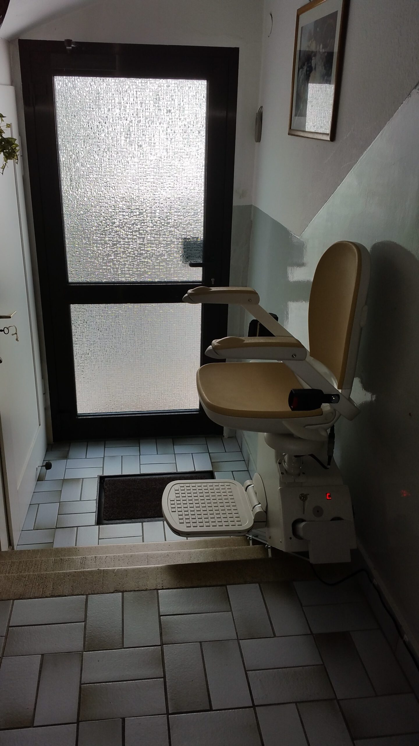 Um 3 Stufen in meinem Treppenhaus zu überwinden, ist eine gerade Fahrschiene unter 2 Meter Länge ausreichend. Die billigste Variante eines Treppenliftes. Damit lagen die Kosten des Liftes noch unter dem Zuschuss der Pflegeversicherung. Der Lift hat mich somit nichts gekostet.